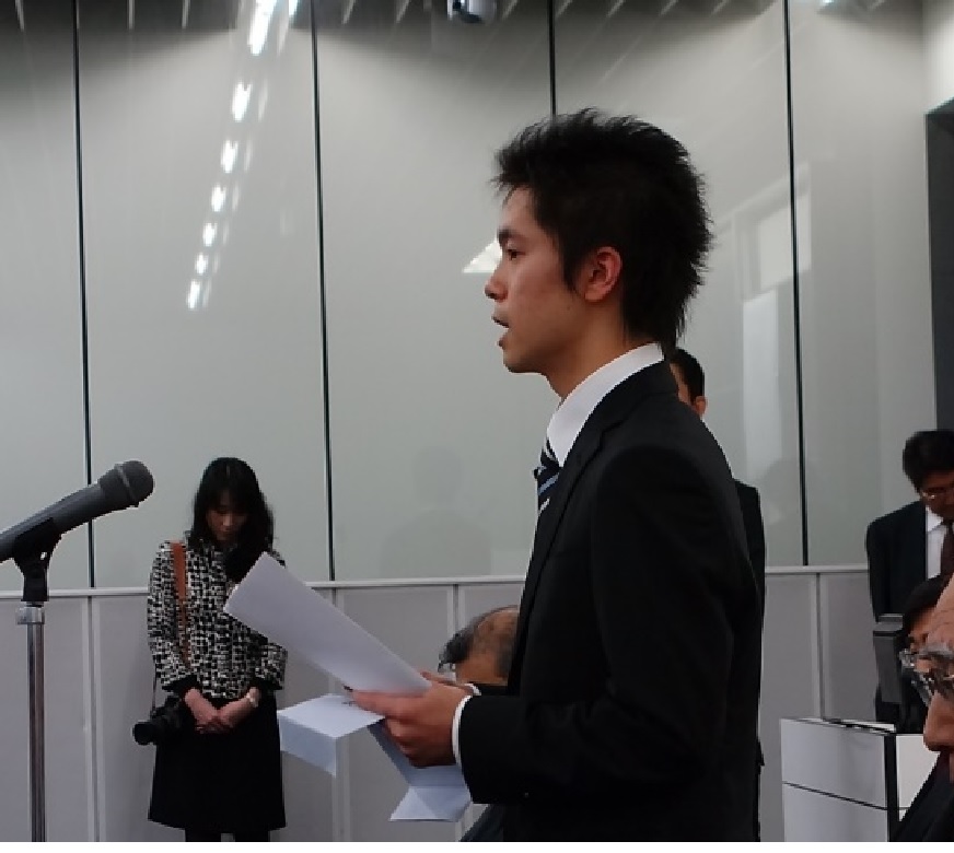 佐々木 悠介君は、原稿なしで喜びを噛みしめながら淡々以下のような受賞挨拶を述べられました。