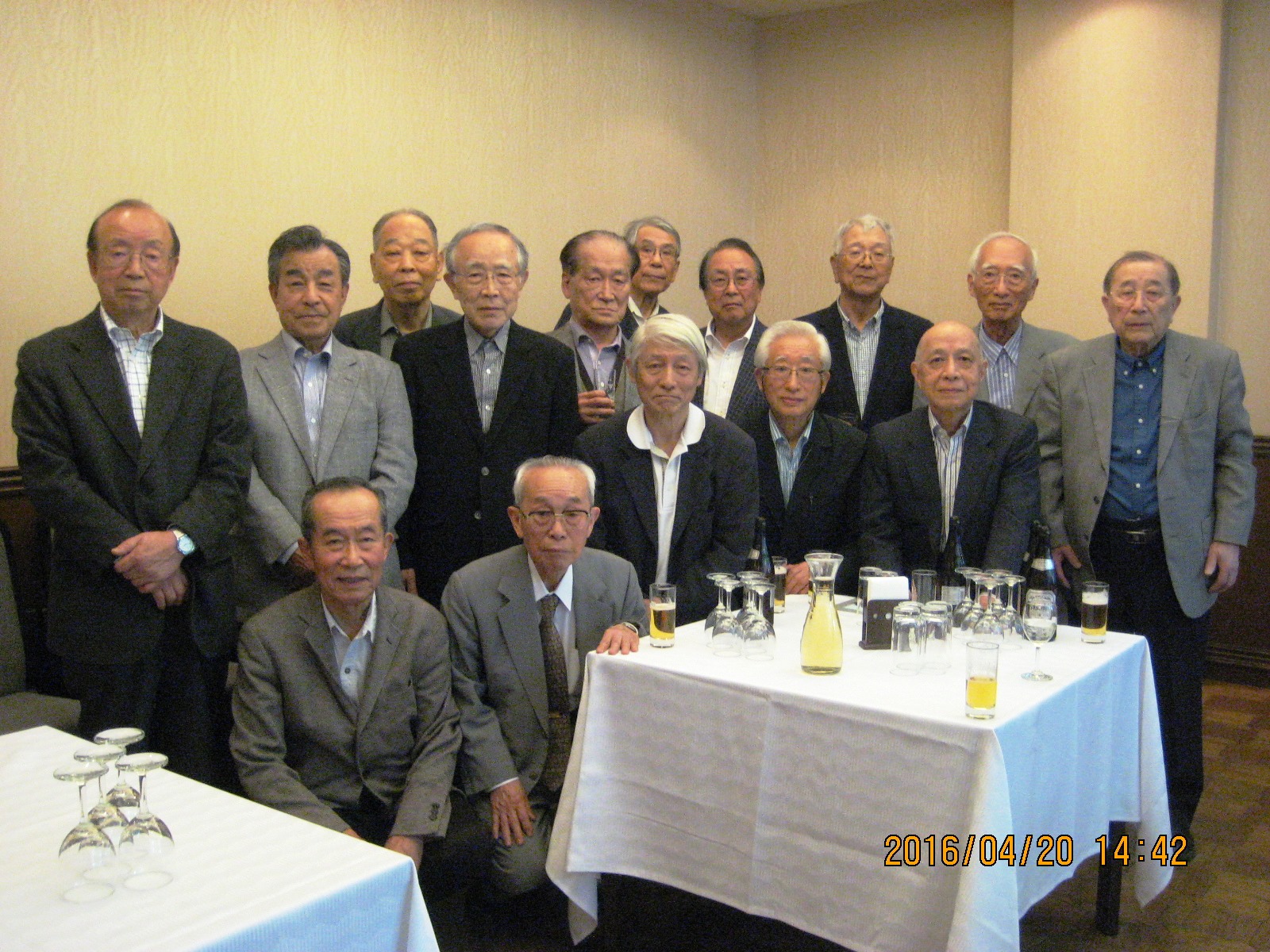 集合写真のあと、15人がそれぞれの近況報告を話した。この会は、当初病気の話と孫の話はしない約束だったが、遂に曾孫の話が永井君からが出る歳になったのには驚いた。又自分が84歳で死ぬ予定で終活をやっている大野君のかたわらで彼の孫が就活をしている話、上田君は原因不明の病気になったが、ある医師の薬を飲んだら治ったのでその薬の名前を後で教えるという不思議な話。安倍君からは都の美術館や博物館は65歳以上は無料(上野の都美術館は第三水曜日)なので利用すると良い。関口君は毎日一万歩、月に一度は1万8千歩あるいている。他にも1万歩歩くひとがいる。設楽君は昔は野球の話しかしなかったが、カズの岳父になった為、今はサッカーの話しかしない。彼や猪俣君のように応用化学から商事会社へ行った人は当時流行の先端にいて、応化物産とか太陽商事とか言ってクラスのヒーローだった。古い話では偶々中学時代同じ区に住んでいて、少年野球の試合で剛腕投手の安倍君と強打者の平山君が対峙したというエピソードも初めて聞いた。余語からは全国版の雑誌に2つの小論文「分子輪廻の死生論」ほかが掲載された事を報告した。