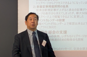 各支部の活動状況:中部支部では、上宮支部長より、年二回開催の交流講演会を含めた活動内容や若手会員参加拡大への取り組み等の説明があり、関西支部(澤村事務局長)では、講演会、懇話会、関西Welcome Party開催など報告がありました。また、両支部よりお互いのイベントに参加し交流を活発化していることも報告されました。
