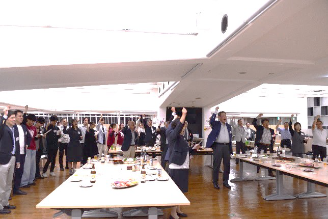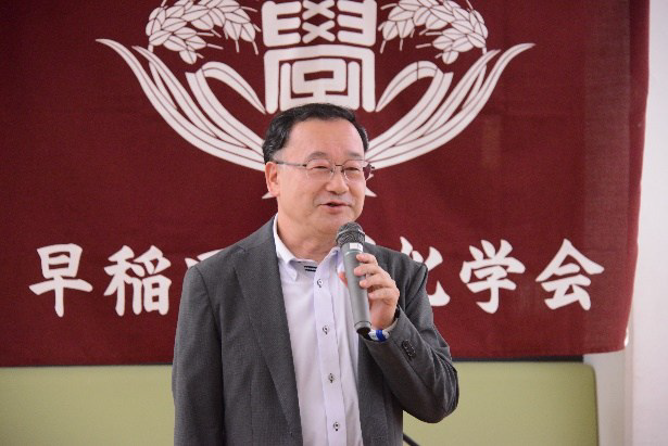 その後、理工カフェテリアに場所を移して、懇親会を行いました。木野先生による開会のご挨拶、参加者による近況報告も行われ、旧友との再会は、懐かしさがよみがえります。早稲田応援団リードによる校歌斉唱・エール続き、杉村副会長の閉会ご挨拶で締めました。