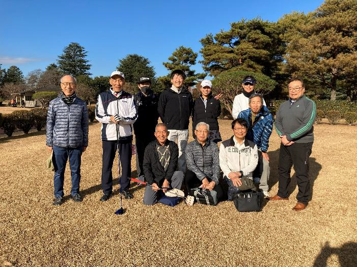 令和7年12月6日、応化会有志によるゴルフ会を開催しました。冬晴れの好天の下、新制18期から新制67期の老若男女(何と年齢差50歳!)の同窓生達が集まり、日頃の練習成果を披露すべく腕前を競い合いました。でも披露の形は様々で、ドカーンと素晴らしいドライバーショットであったり、地を這うような鋭い打球であったり、はたまた大谷選手のピッチングを凌ぐスライダーショットであったり・・・でした。まあスコアは兎も角、皆さん和気藹々と世代を超えて楽しくラウンド出来たことに違いはありません。優勝は新制66期のU氏、ベスグロは新制18期のN先輩でした。応化会大先輩のご健勝ぶりには畏敬の念を抱かずにはいられません。