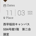下記の要領で学内講演会が開催されます。 演 題 酵素集合体の形成による細胞の代謝制御 講 師 三浦 夏子 所属・資格 日 時 2025年6月7日(土) 15:30-16:30 場 所 早稲田大学 西早 ...